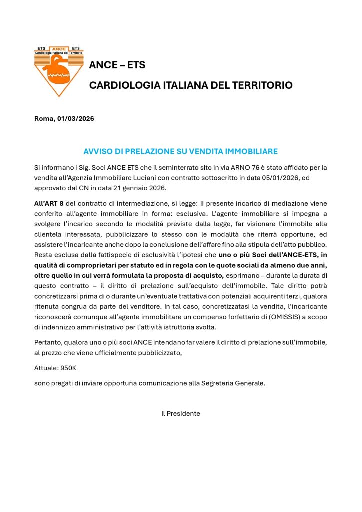 AVVISO AI SOCI ANCE E.T.S. Ogg.: V. Arno 76 RM